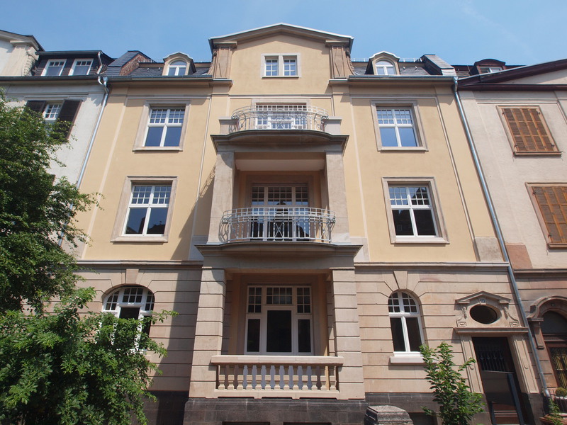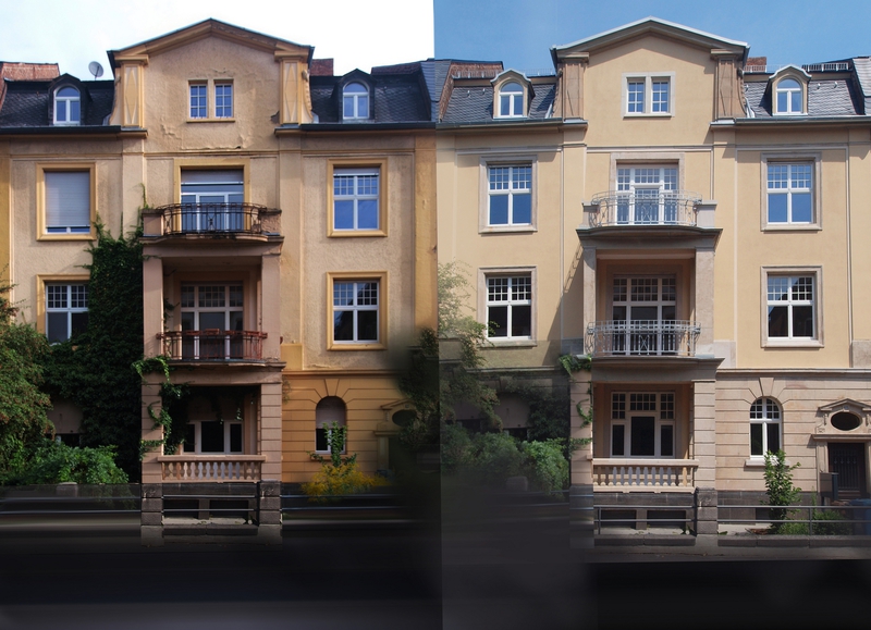 Am beeindruckendsten war die Fassadenwiederherstellung, das Freilegen und die teilweise Erneuerung der Sandsteinarbeiten, die sich harmonisch in das Gesamtbild einfügen. Außerdem das erzielte Ergebnis im Treppenhaus mit der Aufarbeitung der Sockeltapete und der teilweisen Ergänzung der alten Bodenfliesen durch eingelagerte bzw. woanders ausgebaute historische Fliesen. Die Umsetzung der Treppenhausgestaltung wurde unter Berücksichtigung der durch Gutachten festgestellten Originalfarbgebungen vorgenommen.