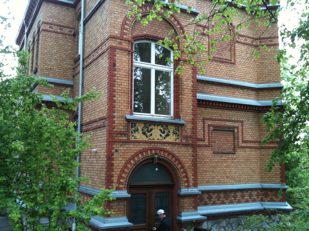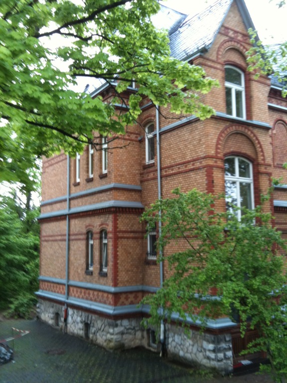 Denkmalgeschützes Objekt in Diez an der Lahn mit aufwendiger Backsteinfasse und Scrafittos auf der Fassade und über den Fenstern. Das Gebäude erhielt unter anderem eine neue Altdeutsche Schieferdeckung. Vorspringende Gebäudeteile wurden mit vorbewittertem Zinkblech abgedeckt. Die verblassten und teilweise beschädigten Scraffitos wurden ausgebessert und farblich neu belebt.
